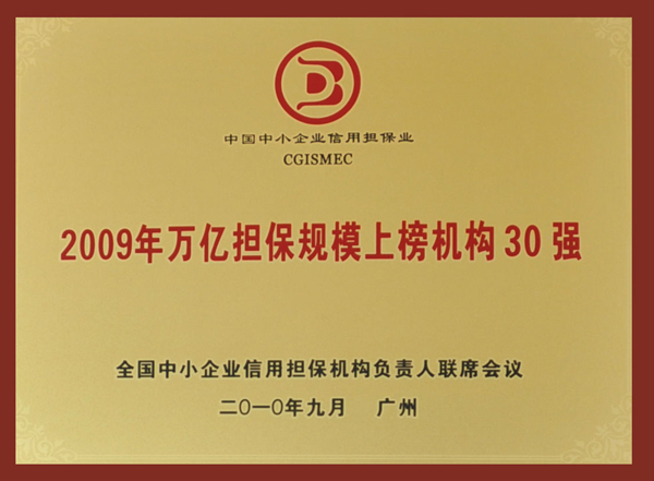 • 2009年度信用管理公司获全国万亿担保规模30强