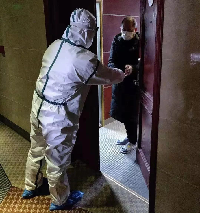 在工作中,突击队员面对患者没有丝毫的惧怕之心,只有关怀和不忍之情。队员们忙碌奔走于隔离点的各个楼层,他们大汗淋漓的身影,让患者们感动不已,由于担心突击队员被感染,有的患者主动要求将饭菜放在走廊的地上,突击队员却说:“我们不怕,您别担心,养好身体,早日康复。”患者们不敢当面道谢,拿了饭菜就躲在门后不停说着谢谢。面对此情此景,几乎每个突击队员都是含着眼泪从隔离楼层走出来,一同出来的还有他们战胜疫情的必胜决心和勇气。