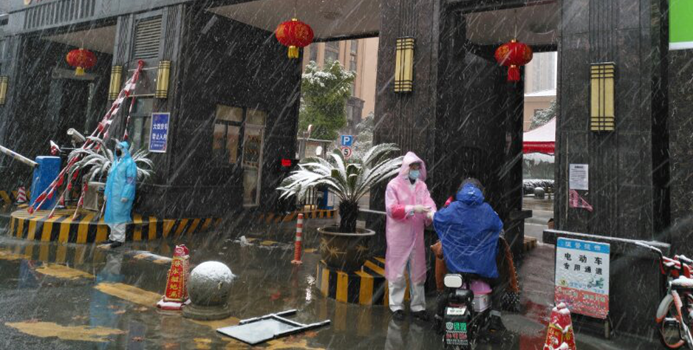 2月15日,一场严寒如期而至,气温骤降,风雪交加。然而疫情就是战场,社区就是前线,凛冽之中,草莓视频 1000名干部职工不畏严寒、义无反顾,坚守在抗击疫情第一线,筑牢汉阳、江汉、硚口片区11个街道90多个社区疫情坚固防线。