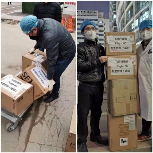 2月12日,卢勇了解到武汉协和医院、武汉儿童医院急需一批重症呼吸机(每台价格约30万元)及防护服。他立即行动,联系到武汉协和医院、武汉儿童医院、迈瑞医疗公司(重症呼吸机商)相关负责人和几家爱心捐赠企业,在多方达成一致后迅速完成各自分工,高效率确定了重症呼吸机型号和货源,完成了11台重症呼吸机及防护服的费用支付。卢勇又紧急联系顺丰快递相关负责人,协调物流运送事宜,在他的多次沟通协调下,顺丰物流连夜将4台重症呼吸机从北京空运至武汉,并及时送到武汉协和医院,随后2台也送到儿童医院,另外1800套防护服也先后送达这两家医院,解了医院的燃眉之急。目前,仍有剩余5台重症呼吸机和部分防护服正在从国外运回来。