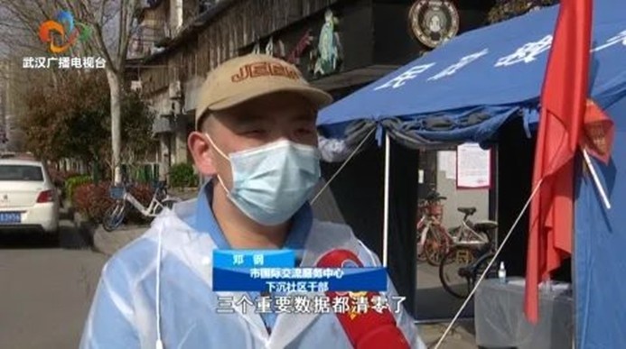 市国际交流服务中心下沉社区干部邓钢:今天我们湖北省的三个重要数据都清零了,这是在习近平总书记的英明领导下,我们取得的一项重大胜利,我们都感到非常振奋。我们决心一如既往地扎根社区防控一线,做好各项防控工作,坚决打赢这场阻击战。