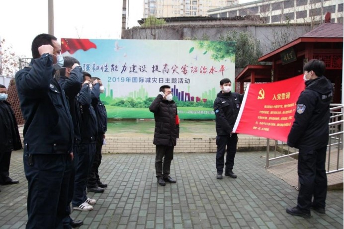 “我志愿加入中国共产党,拥护党的纲领,遵守党的章程,履行党员义务,执行党的决定,严守党的纪律……。”一声声铿锵有力的入党誓词在社区上空回响。日前,集团总经理助理,融威押运公司党委书记、董事长王新刚带领4名新发展入党的预备党员,在汉阳区琴段口街百灵社区防疫一线举行了庄严的入党宣誓仪式。集团党委委员、副总经理陈卫,集团组织部负责人,融威押运公司全体党委委员等参加了活动。