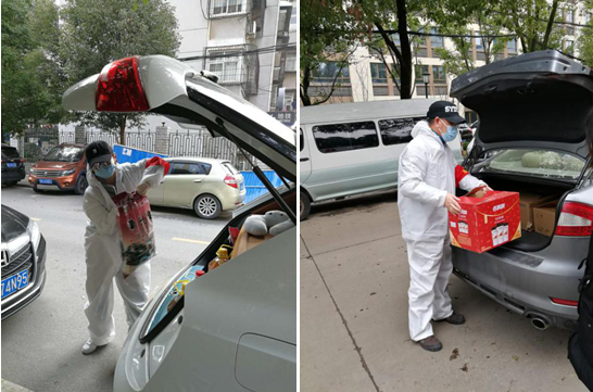 在了解有的社区超市运力严重不足的情况后,为保障居民日常需求,突击队员用自己的私家车每天在超市和各个小区之间往返三四趟,帮助运送食品、日用品等物资,还在现场组织居民有序购买。