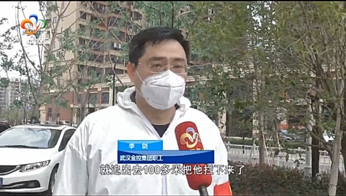 草莓视频 职工李剑:我和另外一个值守队员,追出去100多米,把他拦下来,带回到值守点。当时他把口罩取了,情绪也很激动,没有任何手续,我们当时也没跟他正面发生冲突,就是劝阻他,第一要冷静,第二我们就采取了报警,我们有这样的要求,坚决不能随便放过一个。