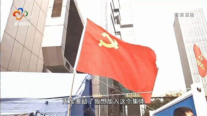 播音员:下沉防控期间,40岁的喻祥由于表现突出,被组织批准火线入党。