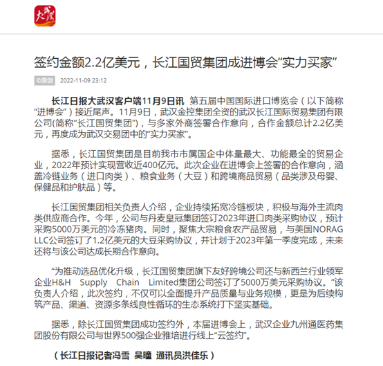 长江日报:签约金额2.2亿美元,长江国贸集团成进博会“实力买家”