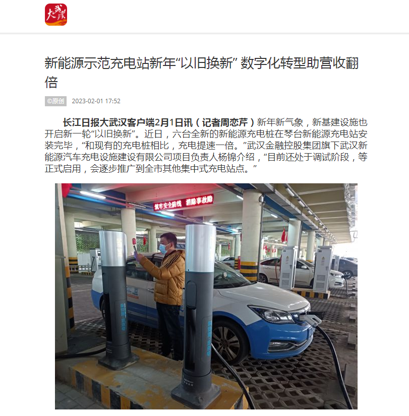 新年新气象,新基建设施也开启新一轮“以旧换新”。近日,六台全新的新能源充电桩在琴台新能源充电站安装完毕,“和现有的充电桩相比,充电提速一倍。”武汉金融控股集团旗下武汉新能源汽车充电设施建设有限公司项目负责人杨锦介绍,“目前还处于调试阶段,等正式启用,会逐步推广到全市其他集中式充电站点。”