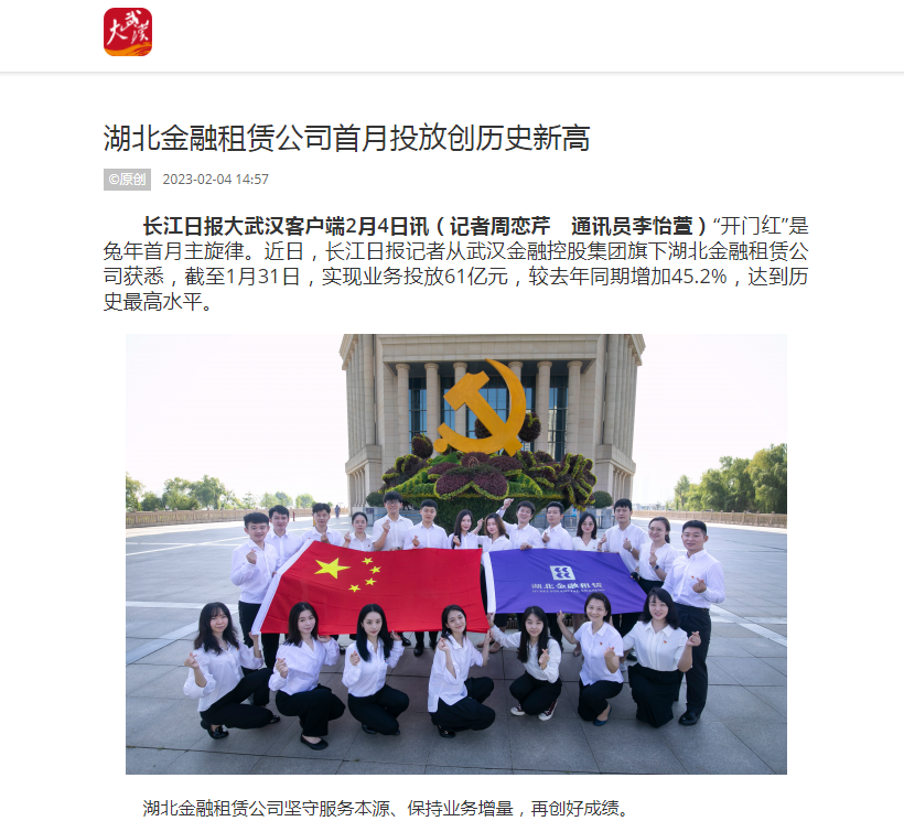 长江日报:湖北金融租赁公司首月投放创历史新高