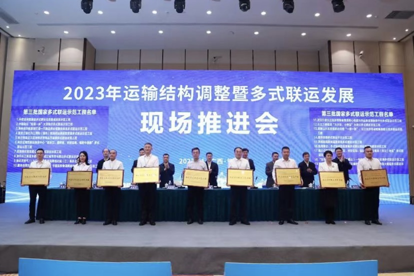 11月14日,2023年运输结构调整暨多式联运发展现场推进会在广西钦州召开。交通运输部党组成员、副部长李扬以及参会有关部委、局和央企领导出席会议,交通运输部部属单位、全国省和计划单列市交通运输部门和多式联运示范工程授牌企业参加了会议。会上,由集团牵头打造的长江经济带粮食物流核心枢纽与供应链金融服务平台多式联运示范项目被授予“国家多式联运示范工程” 铭牌。