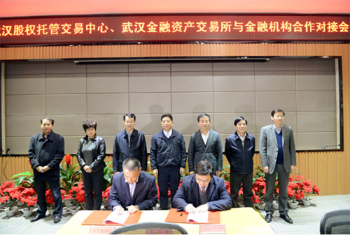 武金所与金融机构合作对接会上,集团公司副总经理、武金所董事长冯鹏熙与工行湖北省分行副行长张金星签订战略合作协议。交行湖北省分行副行长李山红、兴业银行武汉分行行长周伟分别就与武金所合作情况发言。