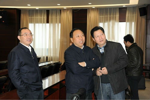 贾耀斌副市长一行参观了集团公司一楼大厅、员工餐厅、健身中心等工作、文化、生活设施,听取了马小援董事长代表集团领导班子所作的工作汇报。