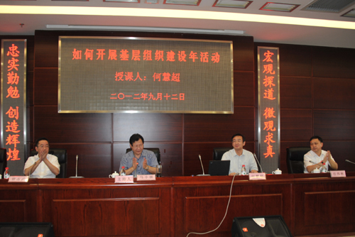 本次培训班议程紧凑,内容丰富,形式多样。培训班邀请了市委组织部组织处何慧超副处长宣讲《基层组织建设年活动有关要求和国有企业党建工作的主要任务》,市委党校章茂龙教授讲解《加强党的基层组织建设、发挥共产党员的先锋模范作用》。他们的讲授,案例生动、信息量大、深入浅出,理论与实践结合紧密,受到参加培训同志们的一致好评。