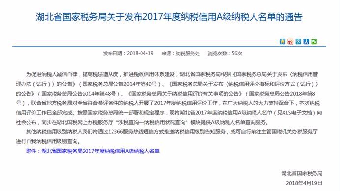 近日,湖北金租公司首次被湖北省国家税务局评定为2017年度纳税信用A级纳税人。纳税信用等级是指税务机关对纳税人至少3个经营年度纳税信用的等级评定,其中A为最高等级。